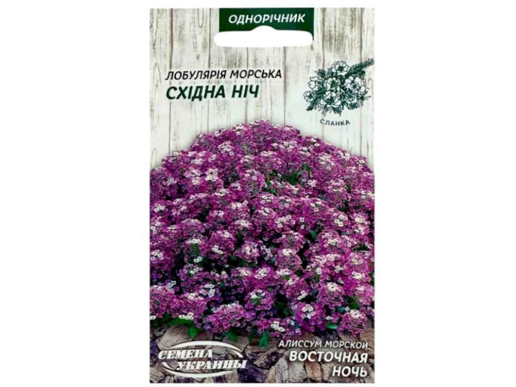 Лобулярія морська Східна Ніч (бузкова) 0,1г (10 пачок) ТМ НАСІННЯ УКРАЇНИ