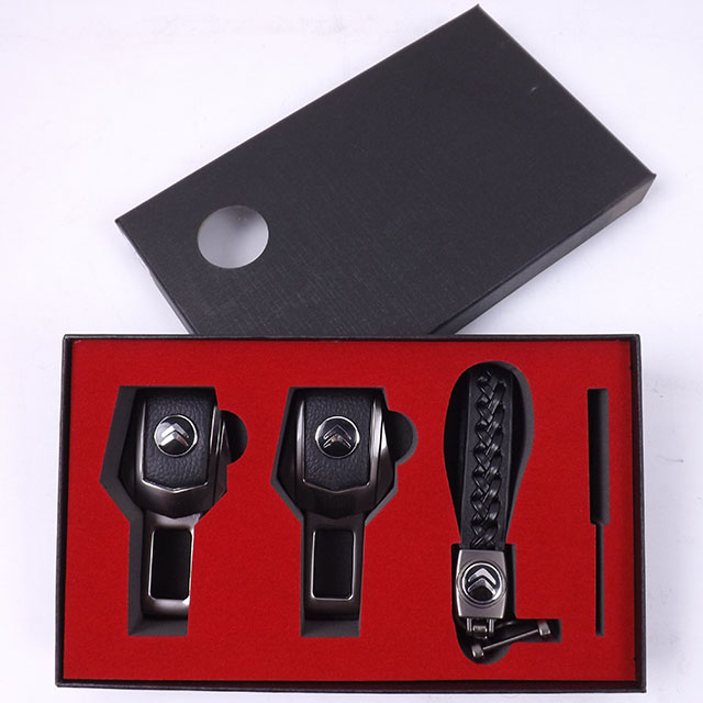 Подарунковий набір CITROEN 2в1 (фіксатор ременів, шкіряний брелок) №2 графіт