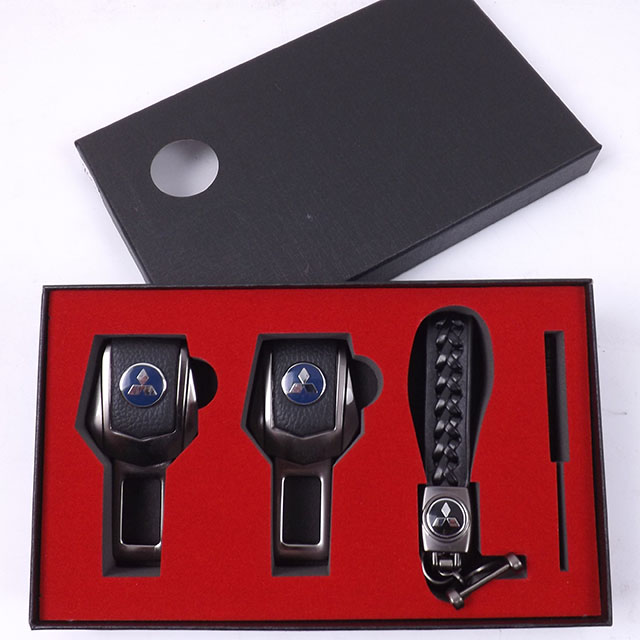 Подарунковий набір MITSUBISHI 2в1 (фіксатор ременів, шкіряний брелок) №2 графіт