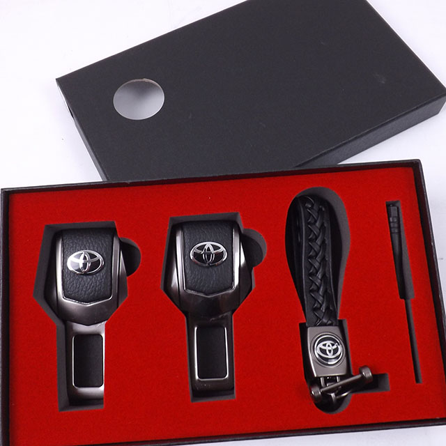 Подарунковий набір TOYOTA 2в1 (фіксатор ременів, шкіряний брелок) №2 графіт