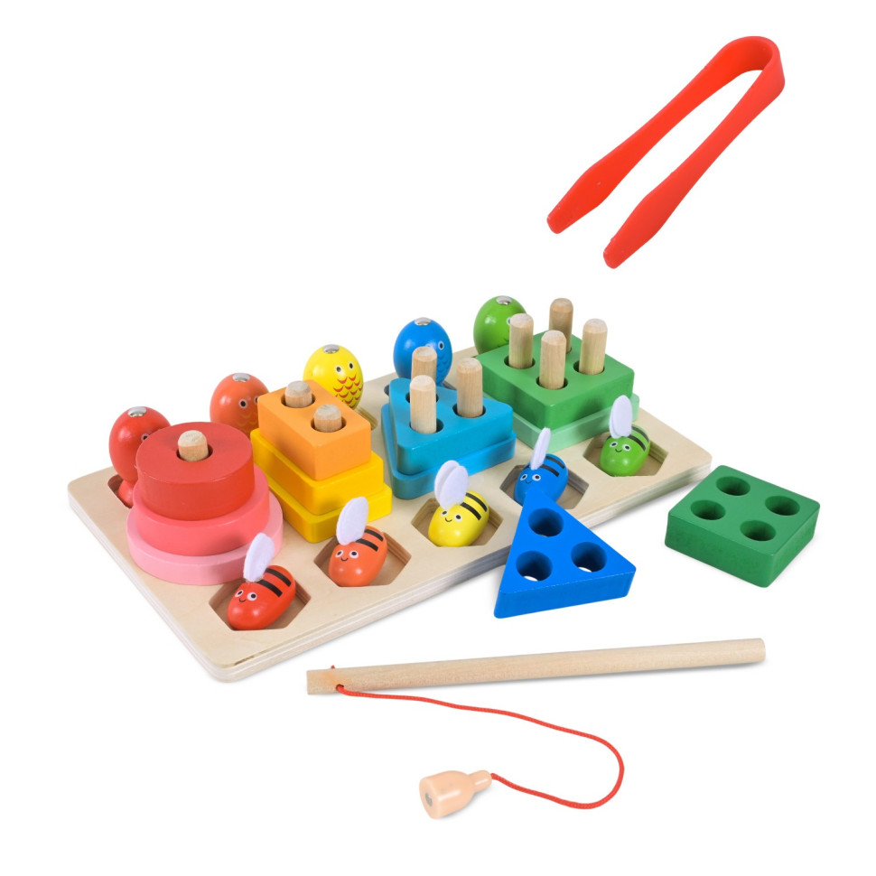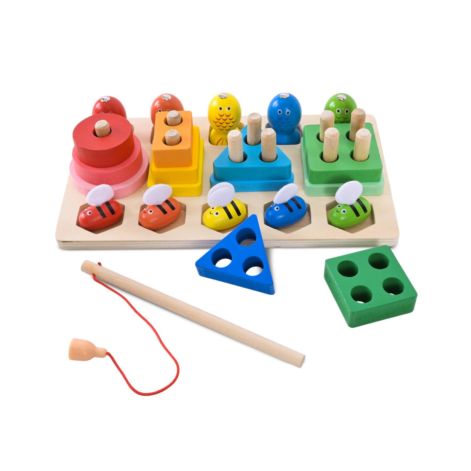 Представляємо багатофункціональну дерев'яну іграшку, яка поєднує в собі одразу три найулюбленіші дитячі розвивальні заняття: пірамідку, сортер та магнітну риболовлю. Це ідеальний інструмент для навчання та гри за методикою Монтессорі.Особливості набору C9417:Геометричний Сортер та Пірамідка:Яскраві різнокольорові фігури (круги, квадрати, трикутники, прямокутники тощо), які потрібно нанизати на відповідні стовпчики.Навчання розрізняти форми та кольори.Розвиток логіки та навичок рахунку (кількість отворів/штирків).Сприяє розвитку просторового мислення.Магнітна Риболовля:Включає кольорові магнітні рибки та вудку з магнітним наконечником.Захоплююча гра, що тренує координацію "око-рука" та спритність.Чудовий спосіб весело вивчити морських мешканців.