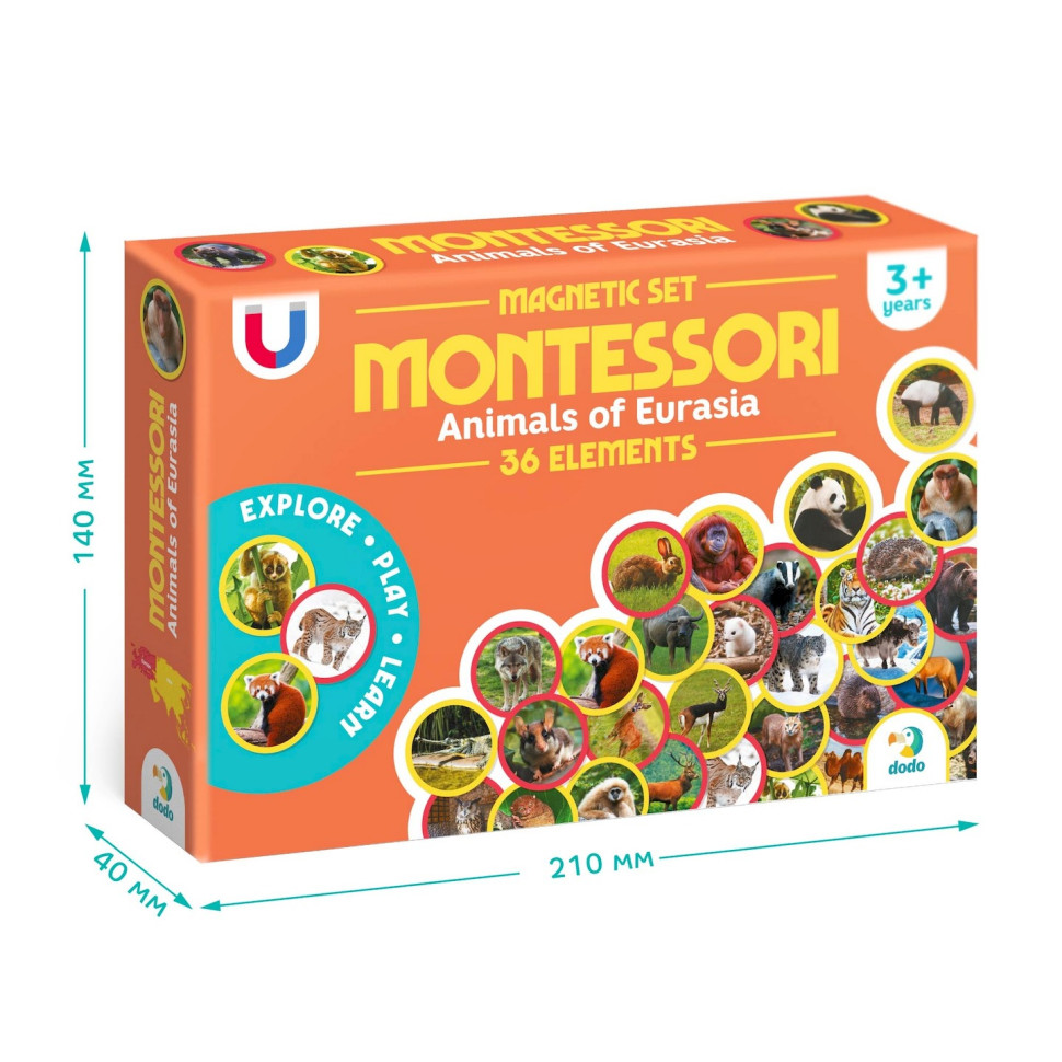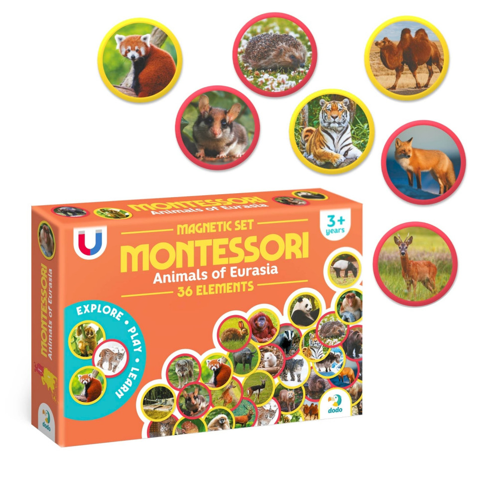 Познайомте дитину з дивовижним світом тварин за допомогою магнітного набору Montessori "Animals of Eurasia". Цей навчальний набір створений за методикою Монтессорі, щоб розвивати мислення, пам’ять, увагу та мовлення у малюків у формі гри.