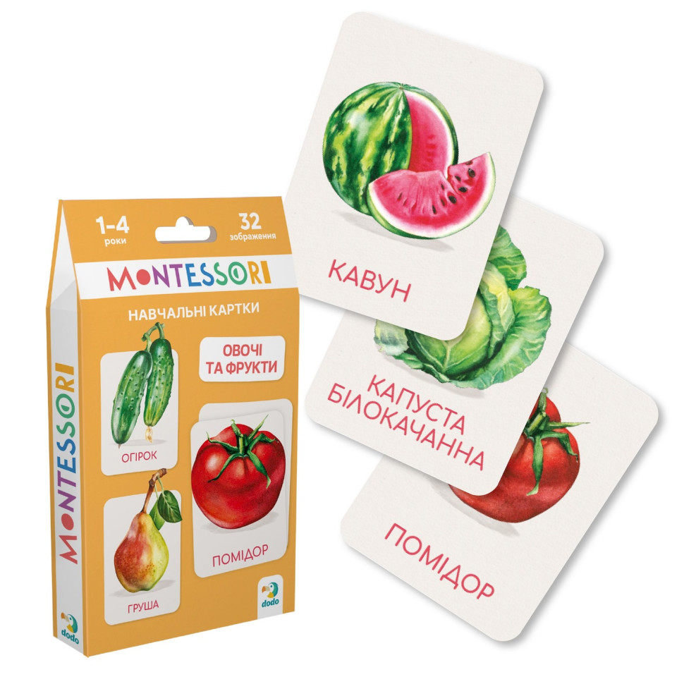 Запропонуйте дитині цікаве навчання з набором навчальних карток Dodo "Монтессорі: овочі та фрукти" — яскравий, інтерактивний та корисний освітній інструмент.