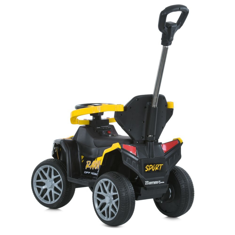 Артикул M 6126EBLRБренд Bambi RacerТип квадроциклРозміри товару довжина 68смширина по дзеркалах/ колесам 41смвисота 90,5смвага 6,7кгвисота від підлоги до сидіння 36смвисота від підніжки до сидіння 17,5cмвисота до керма 47,5смДопустиме навантаження За вагою до 23кгЗа віком від 2-х роківМотор Кількість/V/RPM 1*25W / 6V / RPM15000Батарея Кількість/V/AH 6V4,5AHІндикатор батареї +Заряджання V/mA mAЧас на зарядку 8-12годІндикатор заряджання +Старт Старт з кнопкиЗвук під час старту +Плавний старт у звичайному режимі +Швидкість км/год 3 км/годКількість швидкостей на панелі/на пульті 3Педаль газу +Педаль-гальмо -Світло Фари ПередніПідсвічування -Кнопка вкл/вимк світла +Звук Музика MP3+USBКарта пам'яті +Сигнал -BLUETOOTH +Управління Пульт керування +App(додаток) -Рух вперед/назад тумблерСидіння кількість місць 1Ремені безпеки -Матеріал екошкіраШирина посадкового місця 16смКолеса Матеріал EVAРозмір передніх коліс/дисків 21см / 17смРозмір задніх коліс/дисків 21см / 17смПростий монтаж +Корпус Матеріал ПластикДах -Амортизатори Передні -Задні -Додаткові функції Двері відкр. -Демо-режим -Бат.ручка -Дод. Коліщатка -Кондиціонер -Килимок -Причіп -Захист від падіння +Додаткові елементи Картрідер SD/TF карт, батьківська, яка повертає колесаКОРОБКА Брутто/Розмір 7,5 кг / 67-36-33смКількість шарів 5Наявність кольорового постера -Колір картону коричневий