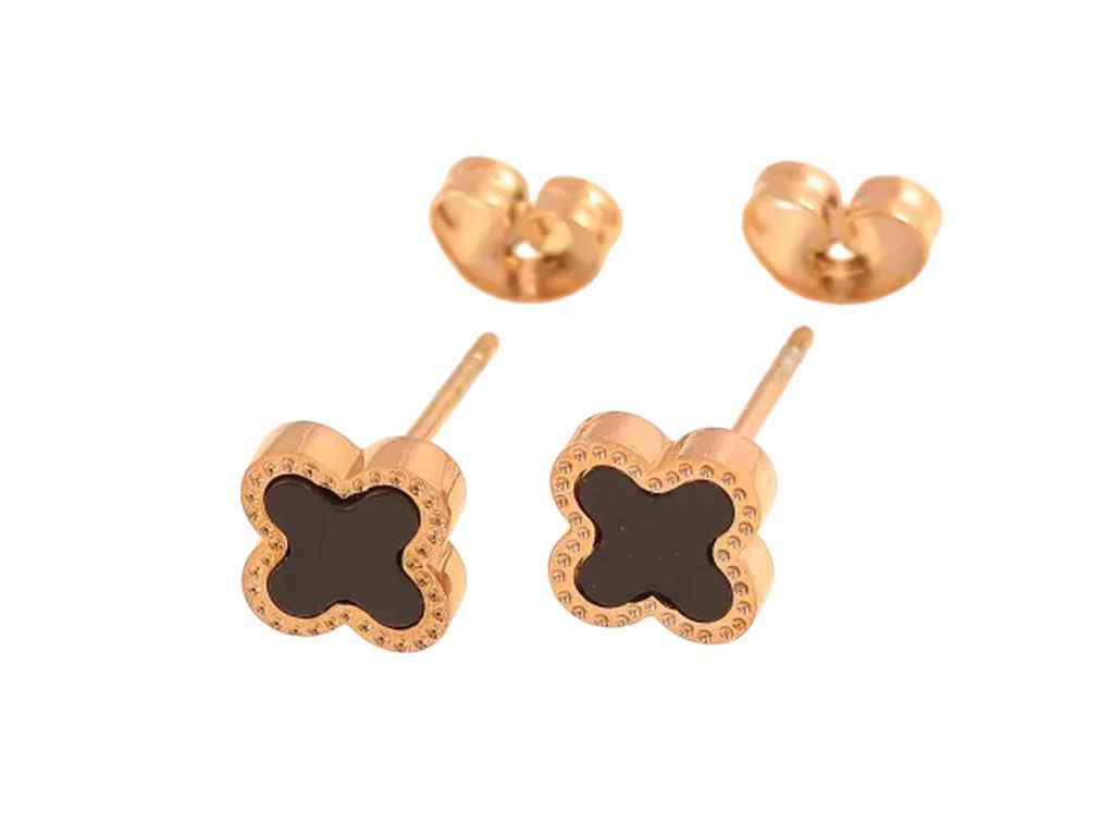 Сережки пусети нержавіюча сталь Конюшина з чорною вставкою 7*7мм 298078 ТМ XUPING