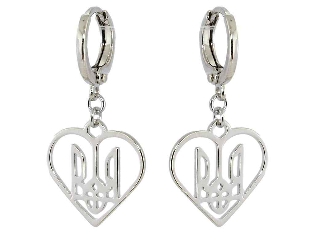 Сережки підвіски на колечках Герб України в сердечку 1119430 ТМ XUPING