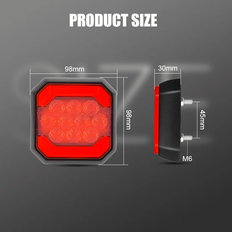 Задній ліхтар квадратний 12/24V (98*98*30мм) червоний DQTL-288 габарит/стоп 4 927 (2шт/уп)