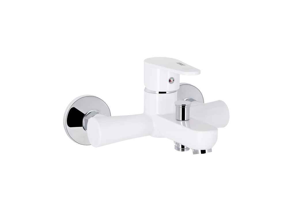 Опис: Змішувач для ванни Brinex 37W 006 виконаний з пластику та має білу матову поверхню. Для вмикання подачі води досить підняти й повернути руківя в необхідне положення. На нього нанесено маркування ХГ води и фірмовий логотип виробника. Настінний монтаж змішувача здійснюється за допомогою кріпильних елементів з комплекту. Круглі розетки приховають похибки установки на обробці ванної кімнати.