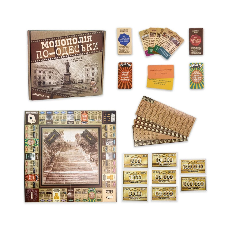 "Монополія по-Одеськи" (Strateg 30318) - це гра для того, шоб Ви хоч десь могли робити гроші. Пропонуємо Вам стати монополістами будь-якої галузі, заробити можливий капітал або залишитися єдиним гравцем, який не став Банкротом.Переміщуючись ігровим полем, гравець може відвідувати кав’ярні, брати участь в аукціонах, будувати одеські дворики та Готелі, займати гроші в Банку під заставу.Крім того, гравці можуть стягнути орендну плату з інших учасників гри, що зупиняються на їхніх ділянках. При цьому гравцям доведеться платити податки, штрафи, адміністративні стягнення, інколи опинятися у в’язниці і визволятися з неї, давши «на лапу» кому треба. Але є також шанс отримати відмінний виграш або втратити кругленьку суму, залетівши у казино.Ця гра з будь-якого гравця з часом може зробити кашерного бізнесмена.♦ Вік: 8+♦ Комплектація: ігрове поле, фішки, кубіки, гроші, ігрові будинки, картки, інструкція.♦ Кількість гравців: 2-4Мова: українська.