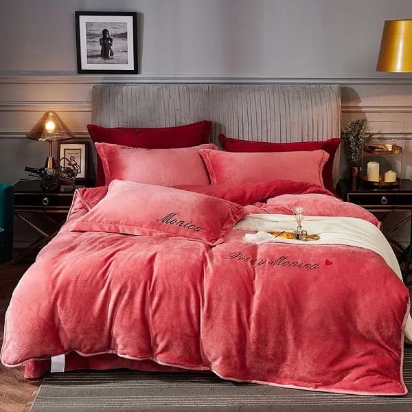 Комплект постільної білизни велюр Євро РР (Корал) Monika Сумка