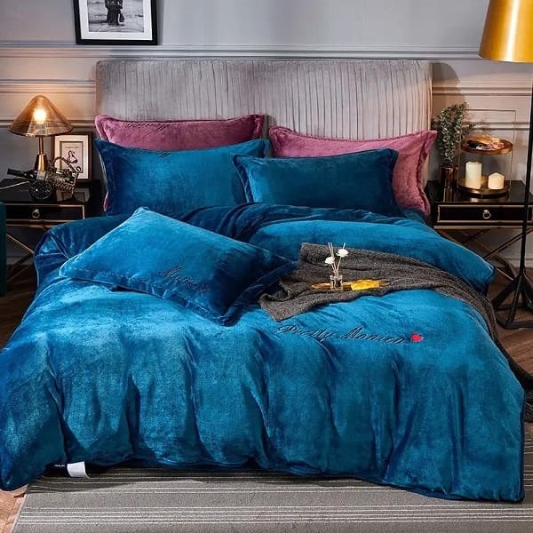 Комплект постільної білизни велюр Євро РР (Синій) Monika Сумка