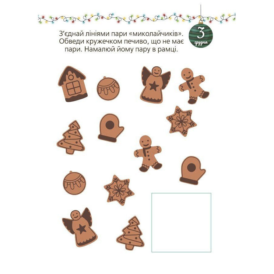 Творчий зошит із саморобками та завданнями для дітей 3–4 років! Цей зошит — справжній скарб. Перед вами — дитячий простір для творчості, побудований за принципом адвент-видання. На його сторінках на дітей чекають зразок листа до святого Миколая, 13 виробів і 18 завдань на кожен день очікування зимових свят.