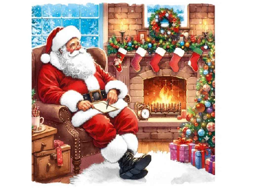 Серветки з малюнком Новий Рік 18шт паперові САНТА ПЕРЕД КАМІНОМ 33*33 3шар ТМSILKEN