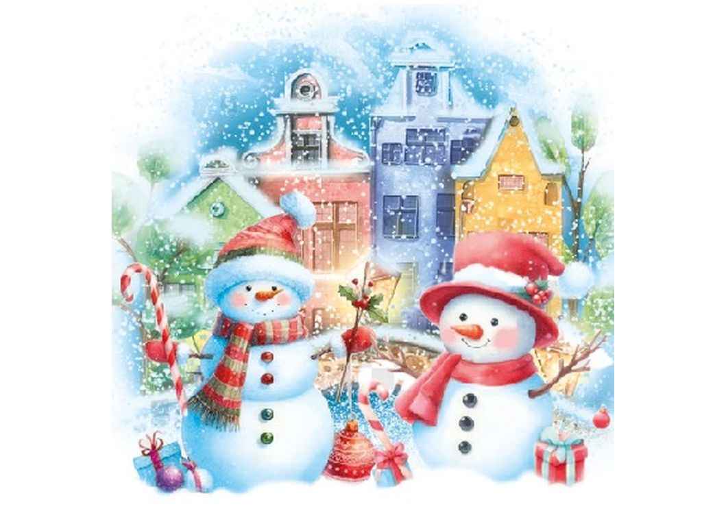 Серветки з малюнком Новий Рік 18шт паперові СНІГОВИКИ У МІСТІ 33*33 3шар ТМSILKEN