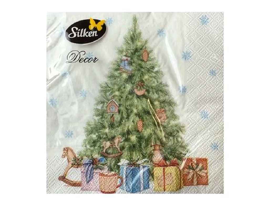 Серветки з малюнком Новий Рік 18шт паперові ЯЛИНКА З ІГРАШКАМИ МІКС 33*33 3шар ТМSILKEN