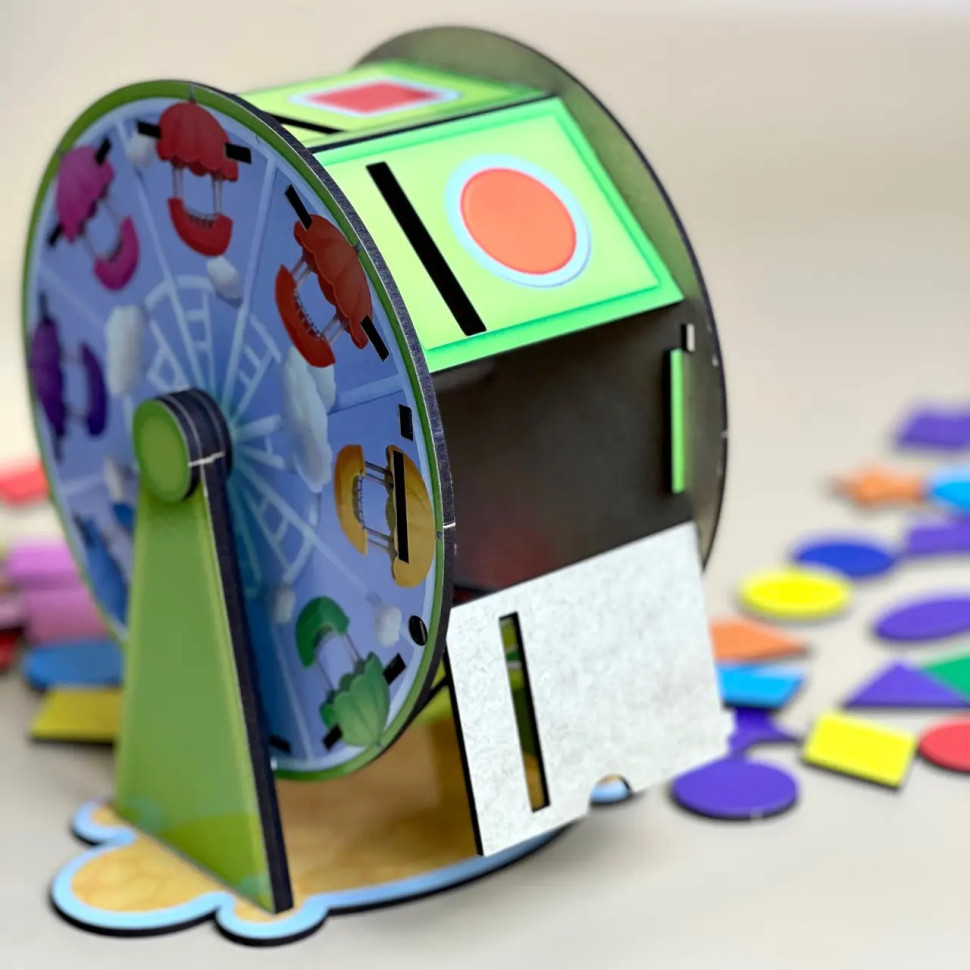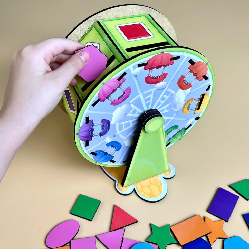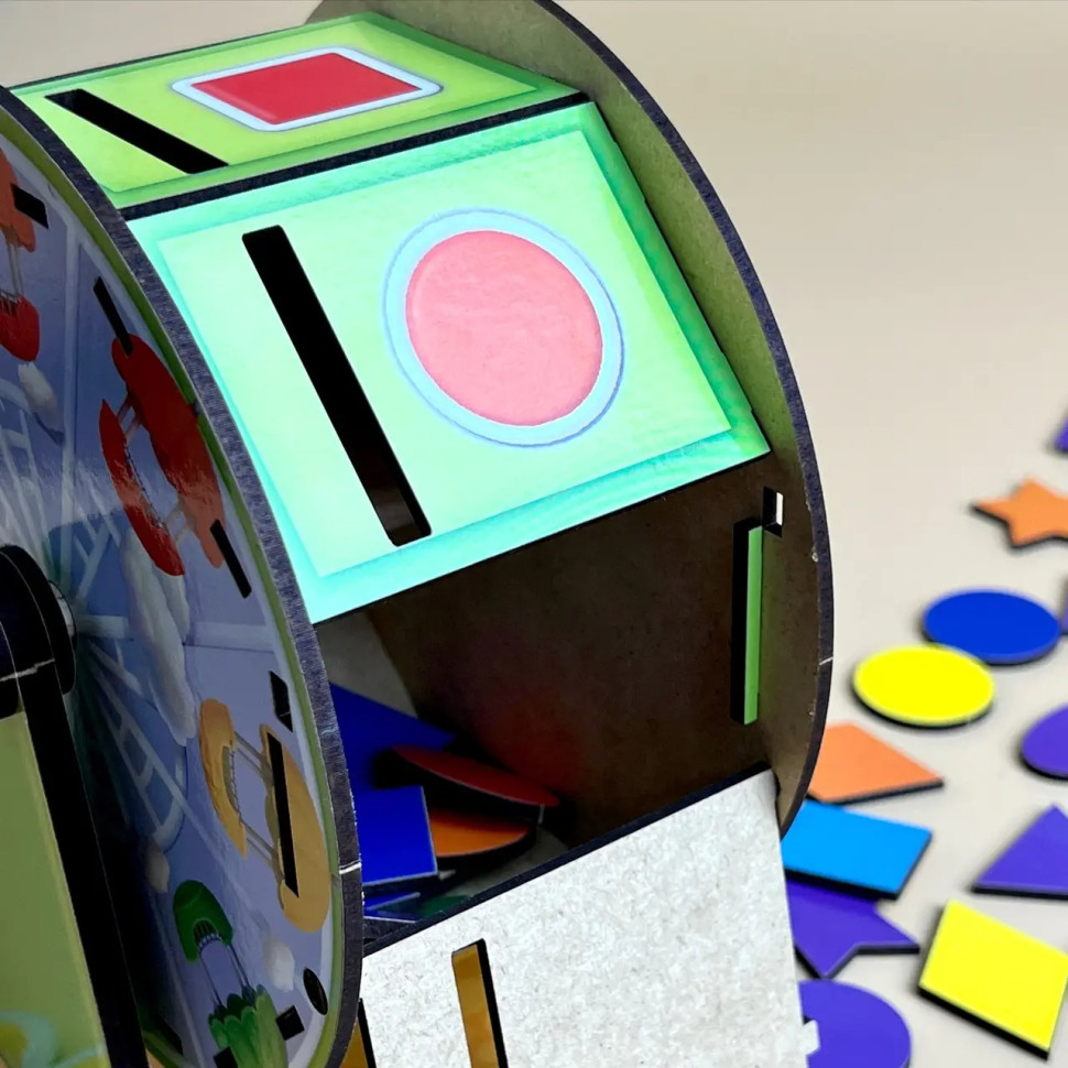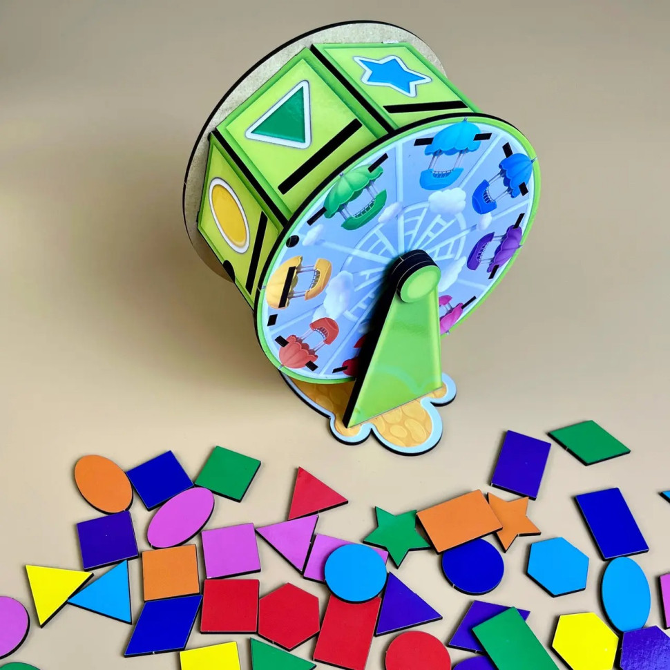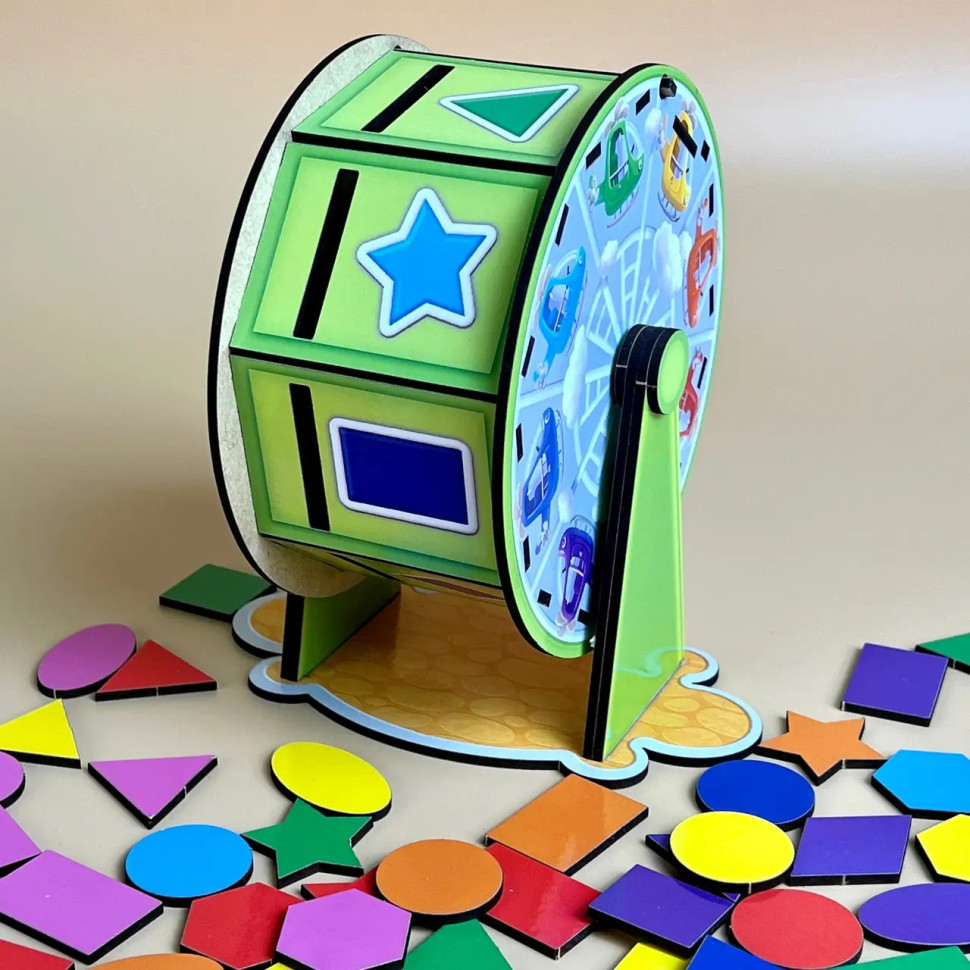 В цьому наборi Ви знайдете 64 плашки для сортування з різнольоровими геометричними фiгурами. Задача дитини: правильно все розсортувати, обертаючи барабан. Вивчайте кольори, рахунок, геометричнi фiгури. Трафарети з фiгур можна використовувати для малювання. Розвивайтеся, весело граючи!1. Розвиток логічного і понятійного мислення.2. За допомогою такого методичного матеріалу, діти пізнають навколишній світ.3. Розвивається дрібна моторика. Дістаючи і вставляючи певним чином деталі сортера, чудово тренуються пальчики.4. Працює зорова пам'ять, тренується увагу і посидючість.