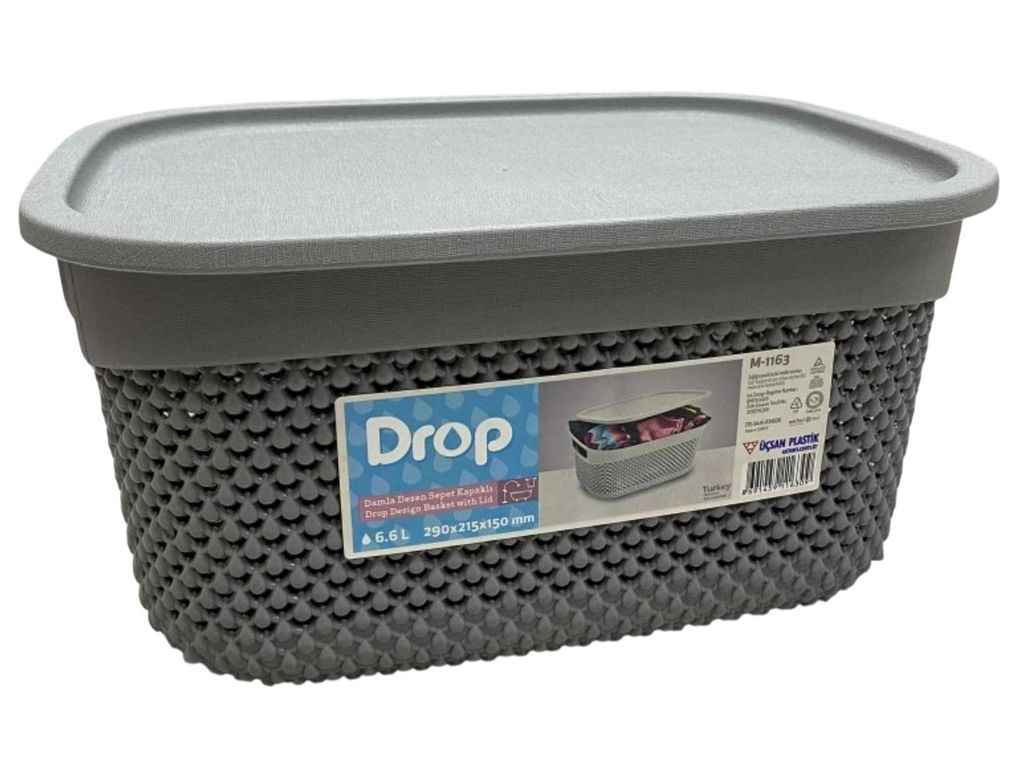 Кошик 6,6л 29х21,5х15см холодно-сірий з кришкою DROP DESIGN ТМ UCSAN PLASTİK