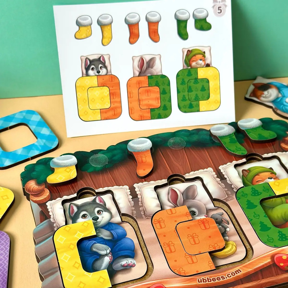 Це розвивальна дидактична гра для дітей віком від 2,6 років, яка сприяє розвитку дрібної моторики, логічного мислення, уяви та сенсорних навичок.