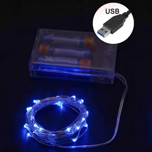 Роса на батарейках 30 LED 3м +USB, синій (250)