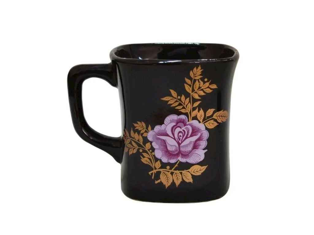 Чашка 400мл квадрат чорна квіти ТМ СЛОВЯНСЬК