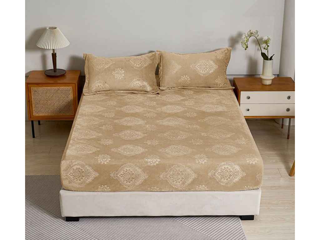 Простирадло 160*200 велюр на резинці наволочки арт.22208 бежевий ТМ MALLORY HOME
