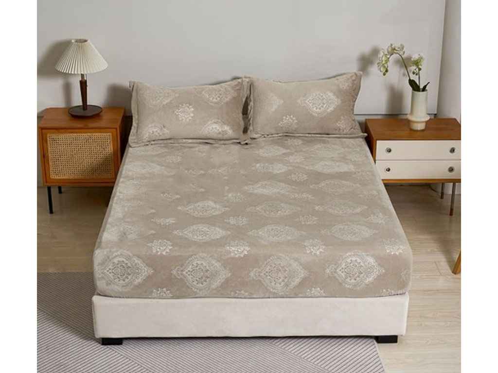 Простирадло 160*200 велюр на резинці наволочки арт.22208 світло-бежевий ТМ MALLORY HOME