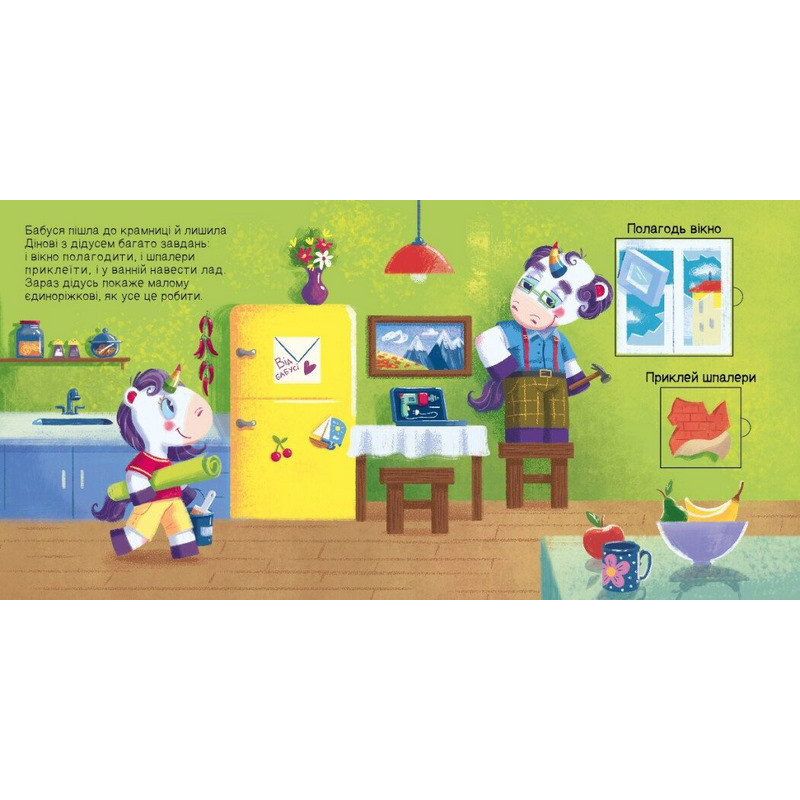 Серія книг «Шукаємо з єдинорогом» створена для дітей, які тільки знайомляться з геометричними фігурами і вчаться їх знаходити в навколишньому світі. Щоб допомогти єдинорогу Діну виконати всі завдання, малюкові знадобляться фігури різного розміру. Їх дитина знайде, тільки відкривши книгу. А потім почнеться захоплююча гра, в якій потрібно буде: шукати, підбирати і правильно використовувати ці фігурки.