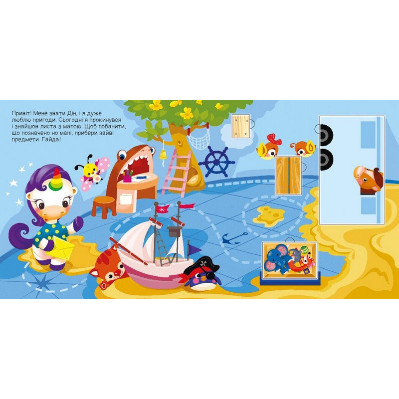 Серія книг «Шукаємо з єдинорогом» створена для дітей, які тільки знайомляться з геометричними фігурами і вчаться їх знаходити в навколишньому світі. Щоб допомогти єдинорогу Діну виконати всі завдання, малюкові знадобляться фігури різного розміру. Їх дитина знайде, тільки відкривши книгу. А потім почнеться захоплююча гра, в якій потрібно буде: шукати, підбирати і правильно використовувати ці фігурки.
