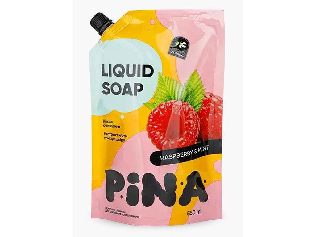 Мило рідке 550мл дой-пак Raspberry and mint ТМ PINA
