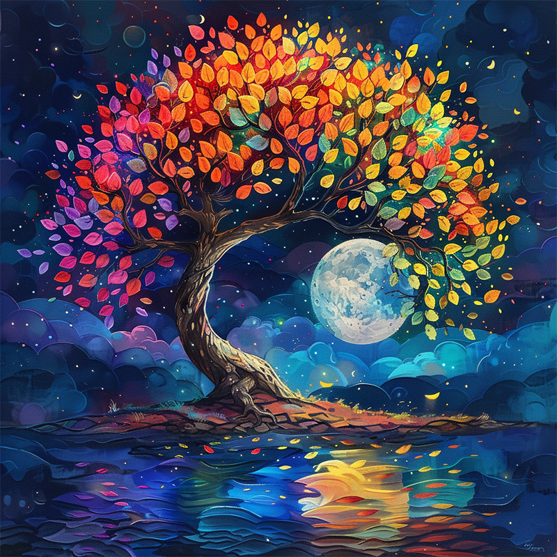 Алмазна мозаїка "Барвисте дерево" BH020 неповна викладка 25х25 см
