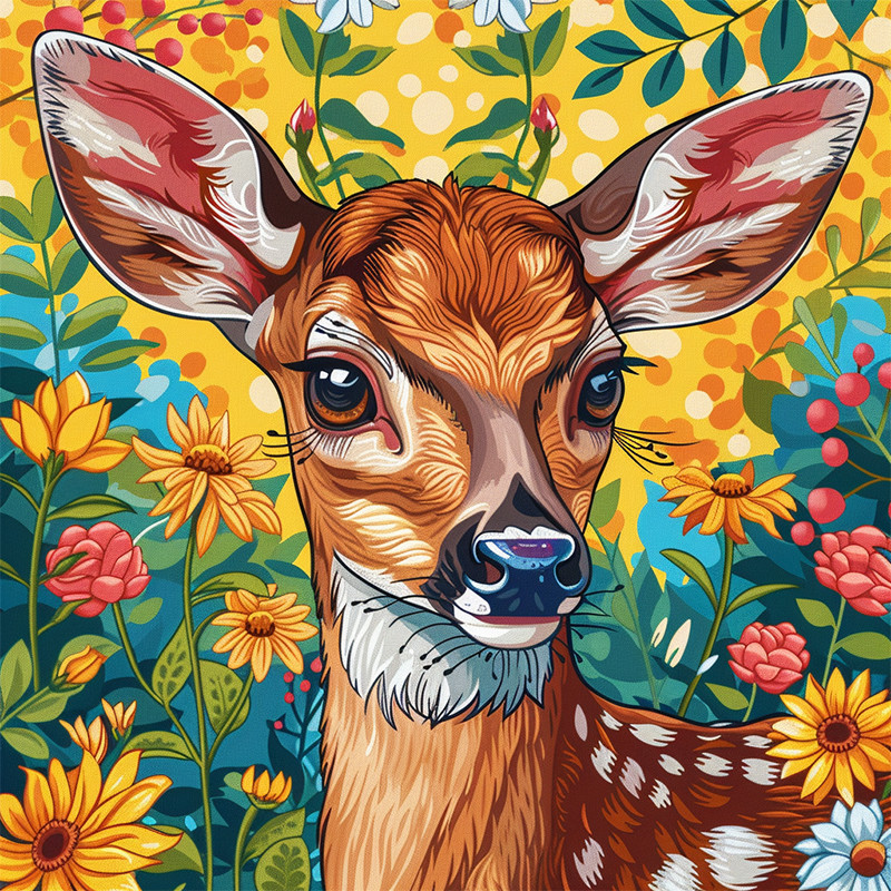 Алмазна мозаїка "Оленя в квітах" BH034 неповна викладка 25х25 см