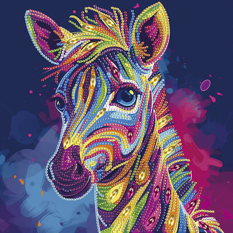 Алмазна мозаїка "Яскрава зебра" BH032 неповна викладка 25х25 см