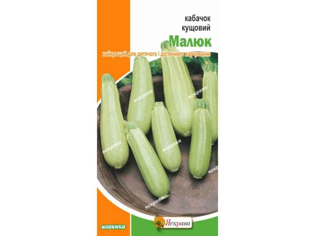 Середньостиглий сорт кабачка -Малюк,відносно недавно на ринку України, відрізняється невеликими плодами, рівномірної форми.Період посіву-березень-травень, висадки -квітень-травень.