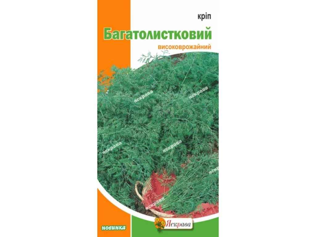 Кріп Багатолистковий -дозріває за 35-45 днів,висота рослини—45-50 см,посадка кропу у відкритий ґрунт проводиться з квітня по липень, на сонячному місці або в легкій тіні,можливий підзимовий посів, із жовтня по листопад.Перші паростки зявляться через 10-14 днів при температурі від 6 градусів.