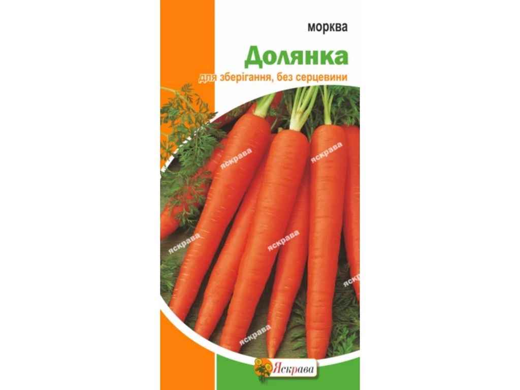 Пізньостиглий сорт моркви Долянка, який вирощують для зимового зберігання, містить велику кількість різних вітамінів і мінералів.Дозрівання триває 150-160 днів,морква виростає до 16-22 см, середня вага 230 г,період зберігання - до весни,посів насіння - у квітні,збір врожаю - у вересні.Стійкість до холоду відмінна.