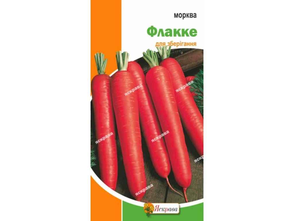 Морква Флакке – це популярніший сорт насіння на ринку, призначений для домашнього вирощування.Час дозрівання: 130-140 днів,розмір коренеплодів: до 20 см завдовжки,період посіву: друга половина березня – квітень, залежить від регіону,збирання врожаю: восени, гарне зберігання в зимовий період.