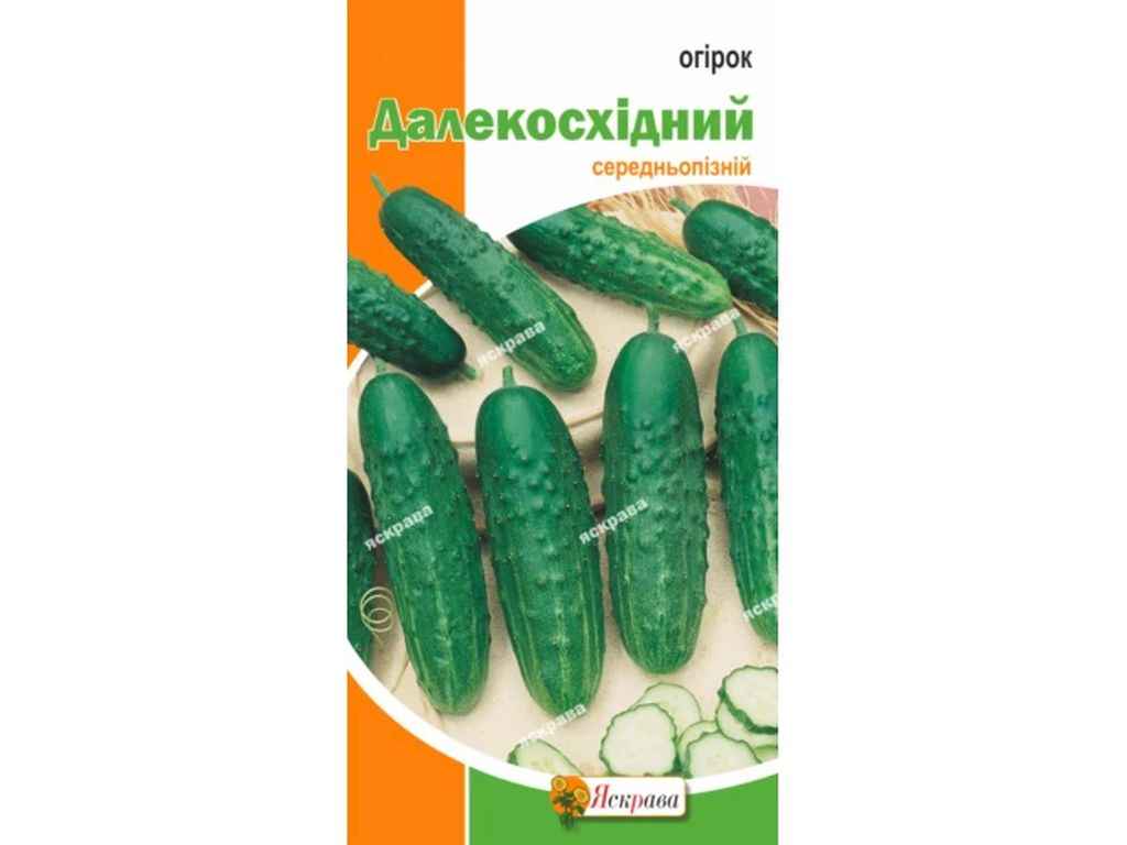 Середньостиглий сорт огірків Далекосхідний отримав безліч позитивних відгуків від фахівців і садівників.Період вегетації від 45 до 50 днів,середня довжина плоду 12-15 см,на стадії корнішонів готовий до збору для засолювання.Посів у ґрунт - у травні.