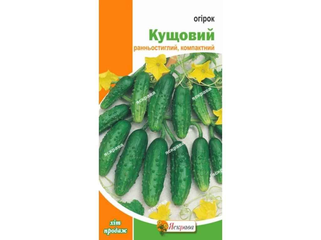 Огірок Кущовий - відмінний вибір для професіоналів і початківців садівників, зручний у вирощуванні, швидко дозріває і універсальний у використанні.Раннє дозрівання - 40-45 днів,огірки рівномірні, витягнуті, у довжину до 9-12 см,середня вага огірків - до 100-120 г,Для вирощування огірків вибирають легкий і дренований ґрунт, а також піднесені місця, де немає можливості застою води. Насіння перед посівом замочують, а ґрунт розпушують і удобрюють мінеральним комплексом. Грядки роблять на відстані 40-50 см одна від одної, глибина посадки - близько 2 см.