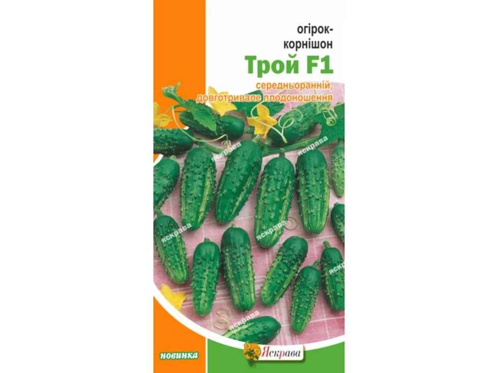 Огірок-корнішон Трой F1 0.5 - бджолозапилюваний гібрид нового покоління. Кущ дає за сезон до 6-7 кг соковитих зеленців із тонкою шкіркою. Вони анітрохи не гірчать, смачно хрустять, ідеально підходять для консервації та засолу. До переваг сорту відносять довгий період плодоношення (до 2-3 місяців), транспортабельність, стійкість до спеки та борошнистої роси.