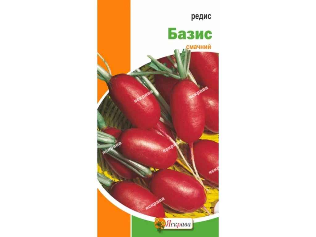 Сорт Базис виділяється швидкими термінами дозрівання навіть в прохолодному ґрунті, вегетація 22-25 днів,форма коренеплоду циліндрична,врожайність висока,проростає насіння навіть при 2-4 °C.