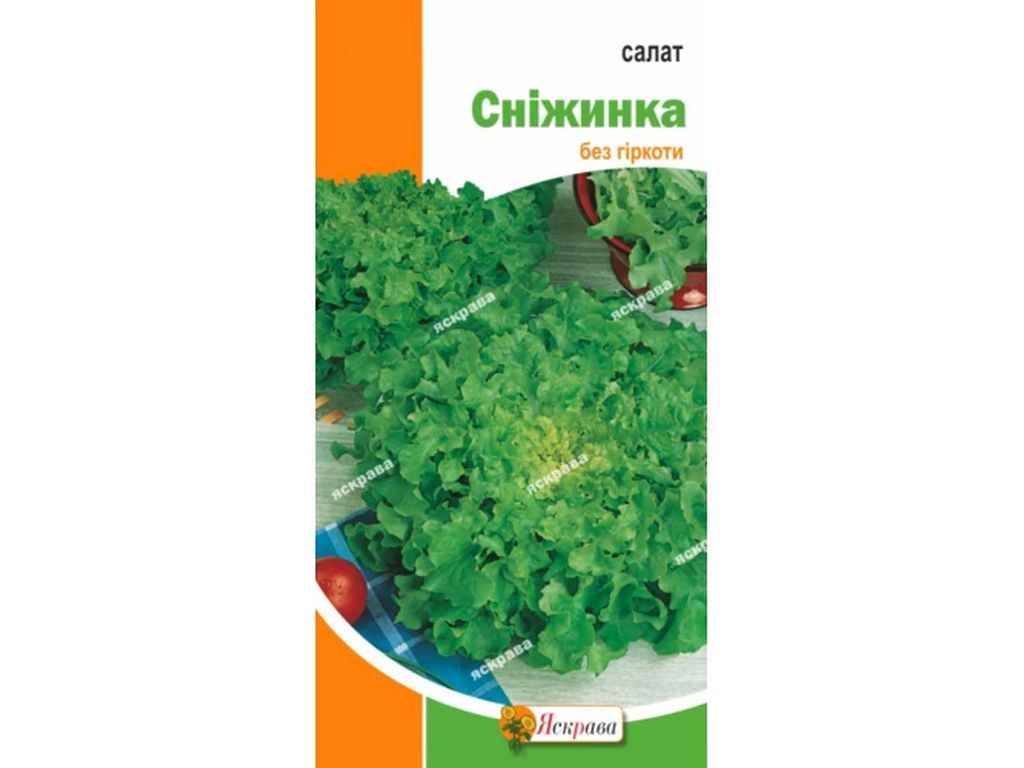 Листя салату Сніжинка-розмір розетки: піднята, діаметром 25-30 см та висотою 20-25 см,врожайність: 1-2 кг на м2,період збирання врожаю: 20-25 днів після посадки,норма висіву салату: 800-900 г на 1 га.Листовий салат Сніжинка висівають з 15 березня по 15 квітня у ящики на глибину близько 1 см. Розсаду висаджують у ґрунт з 15 квітня по 15 травня.