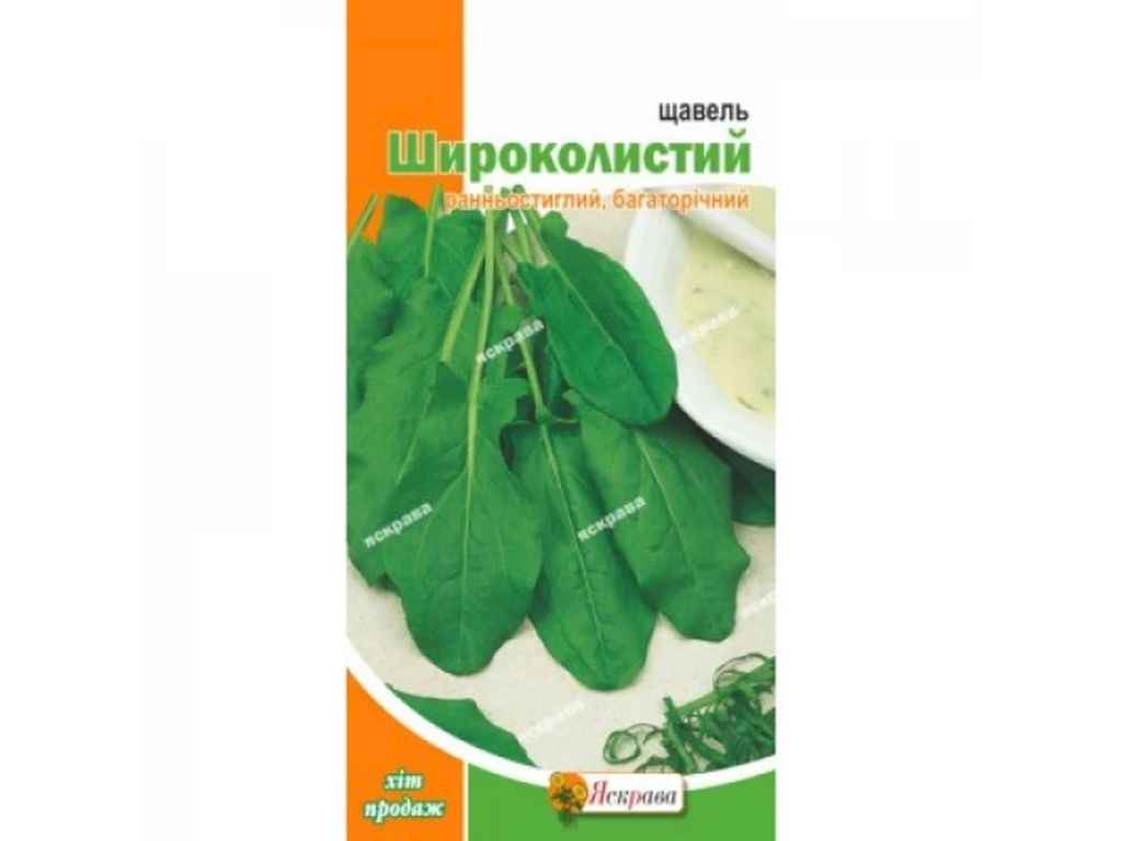 Насіння щавлю Широколистого відносять до багаторічних травянистих рослин. Урожай рекомендується використовувати в свіжому, тушкованому, вареному вигляді і для консервації.Кущ висотою варіюється від 30 до 50 см,урожай можна збирати на 45-50 день після появи перших сходів.