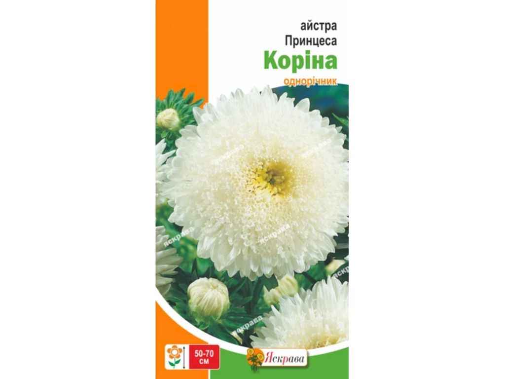 Айстра Принцеса Коріна чудова однорічна рослина з білосніжними суцвіттями.висота куща: 60-70 см,квітне з липня по жовтень, на кущі одночасно розкривається до 20 бутонів.Посадка айстр насінням здійснюється у квітні в ящики або в травні — у відкритий грунт.