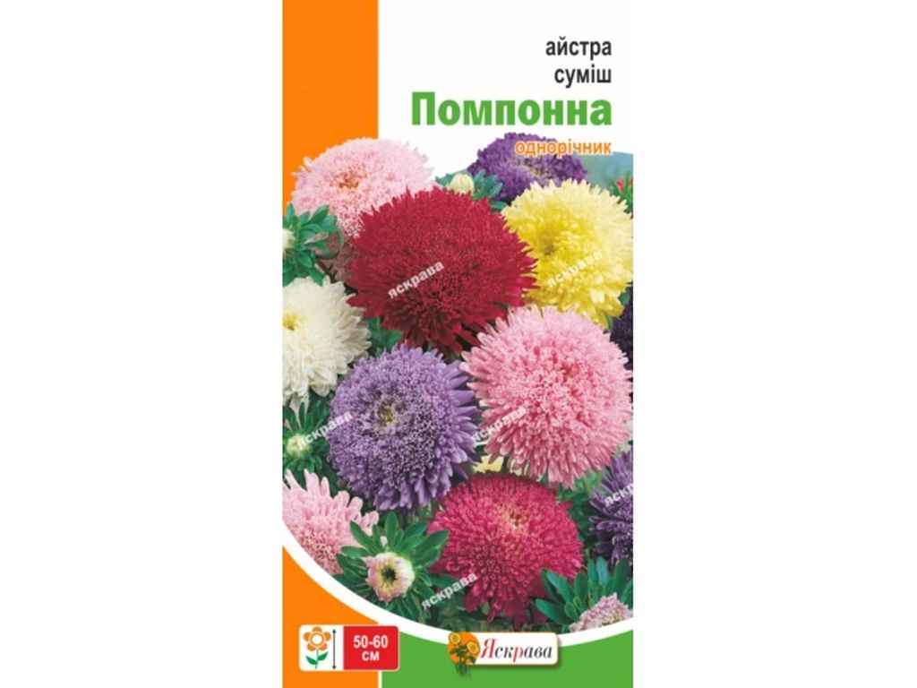 Айстра суміш помпонова-однорічна квітка, кущ висотою до 60-70 см, цвітіння з кінця липня до самих заморозків.Висаджують на клумбу в травні на глибину до 1 см, в парник — ще в березні-квітні в субстрат з додаванням торфу.