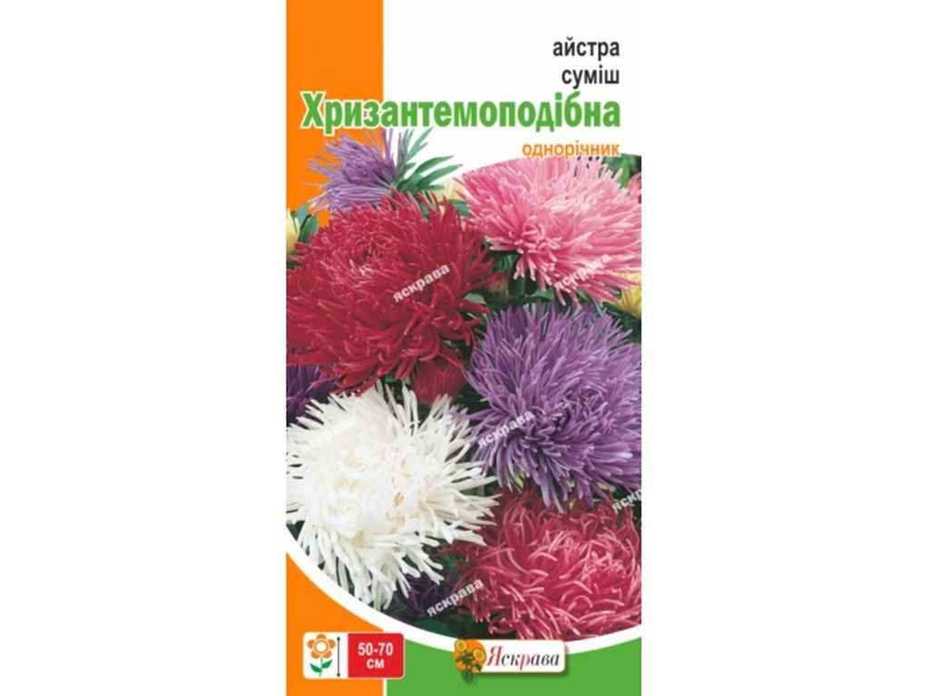 Айстра Хризантемоподібна -висотою літник до 50-70 см,тривалість цвітіння до 45 днів,однорічна рослина.Для отримання більш раннього цвітіння, яке триватиме до вересня, краще висівати насіння під зиму або попередньо виростити розсаду.