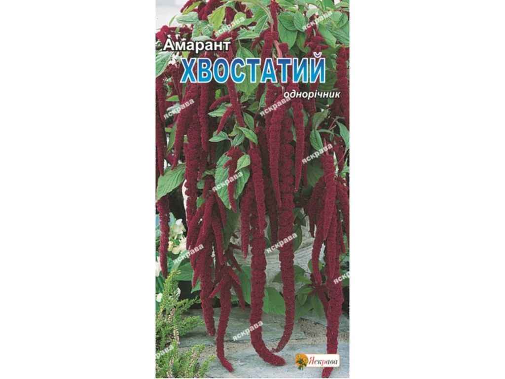 Амарант Хвостатий — однорічна рослина з багряними суцвіттями.Стебла: прямі, 100-150 см у висоту, квітне з червня по жовтень, рясно та безперервно.Посів амаранту відбувається відразу у відкритий ґрунт у середині травня, або у ящики на розсаду з квітня на глибину 2-3 см.