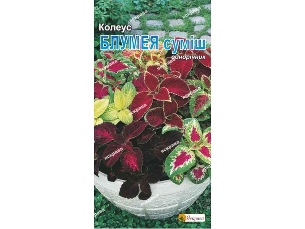 Колеус Блумея-висотою культура 30-35 см,листя з бархатистою поверхнею, різьбленими краями,квітки дрібні, пурпурові.Вирощувати колеус з насіння можна в будь-який час.
