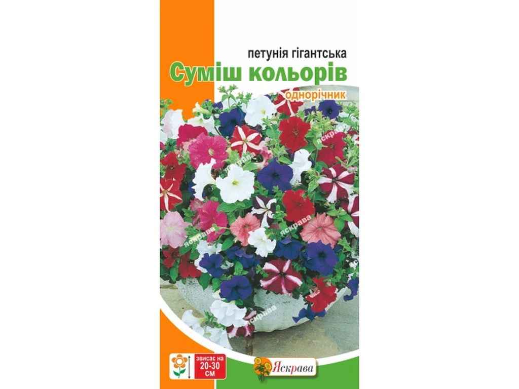 Петунія гігантська Суміш кольорів (20 пачок) 0,15г ТМ ЯСКРАВА