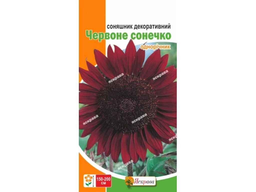 Соняшник декоративний Червоне Сонце-досягає 2 метрів у висоту,суцвіття-кошики від 20 до 30 см в діаметрі, бордового кольору,цвіте з середини серпня до заморозків.Посадка декоративного соняшнику проводиться в кілька «хвиль» з інтервалом в 7-14 днів, з травня по липень, для досягнення безперервного цвітіння.