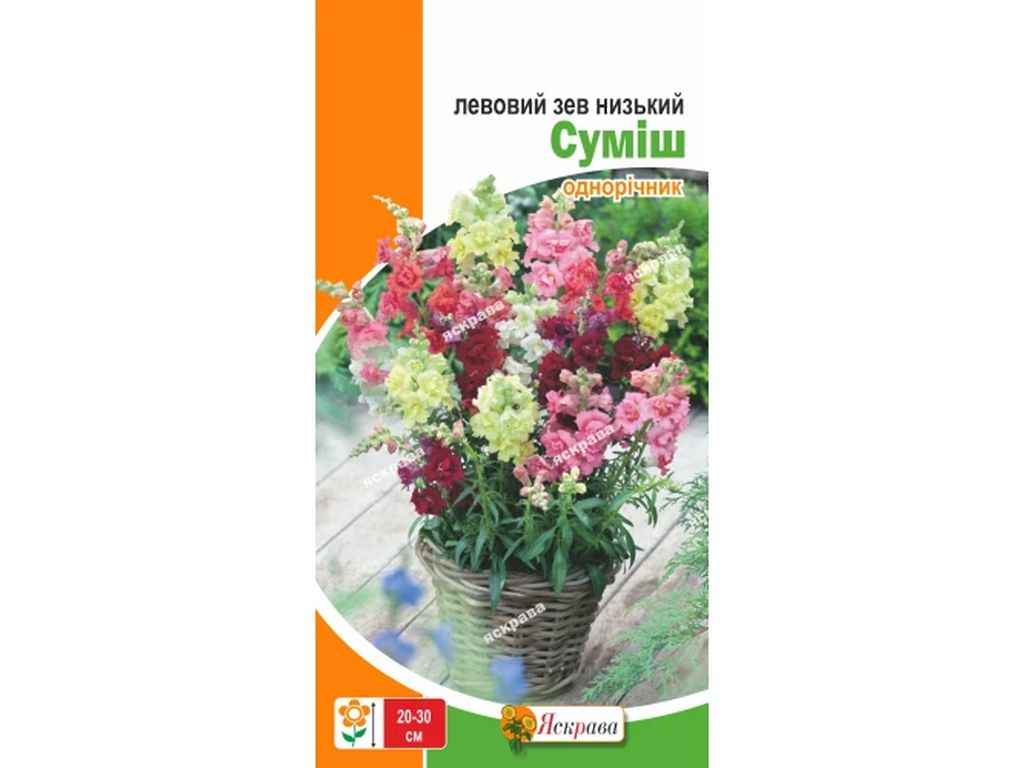 Левиний зів низький суміш- червоні, персикові, жовті, рожеві, бордові квітки.Однорічник.Висота до 20-30 см,цвіте з червня по жовтень.Саджаємо левиний зів насінням на розсаду у квітні, на ділянку — в травні на глибину не більше 1 см, злегка присипаючи землею.